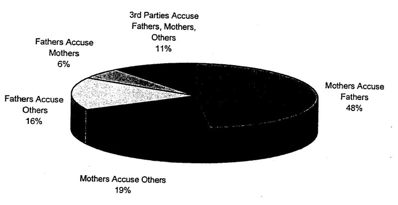 When the research is examined critically, the strongest study is that conducted by the Association of Family and Conciliation Courts, because of its large sample, its use of multiple sites, and the fact that cases are fairly representative of the total population of divorce cases with disputes over custody and visitation. Its findings indicate that sexual abuse allegations do occur in the context of divorce, but the overwhelming majority (98%) of disputed custody cases do not involve sexual abuse accusations. Moreover, although the majority of charges are brought by mothers, by no means all are. The predominance of women as accusers and men as accused is consistent with the finding that the majority of offenders are men. This study and that of Faller contradict the assertion by others that